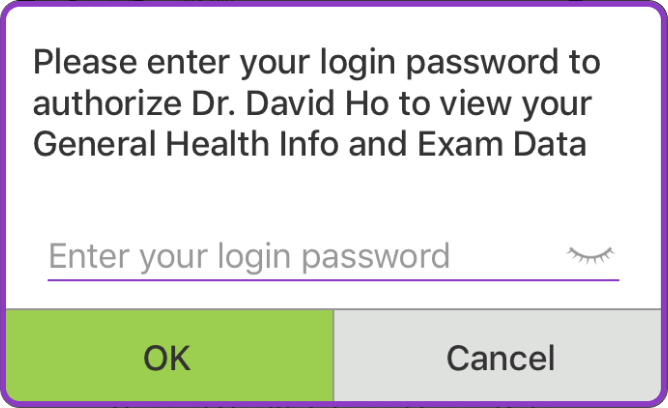 If the Authorize button turns purple, you have successfully granted the Expert/Clinic access to your general health information and exam data.