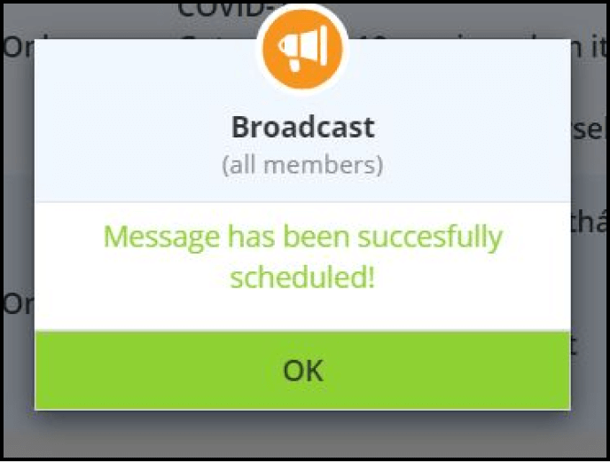 After your text messages or photos have been sent, a pop-up indicating "Sending" and "Successfully Scheduled" will appear. Click OK.