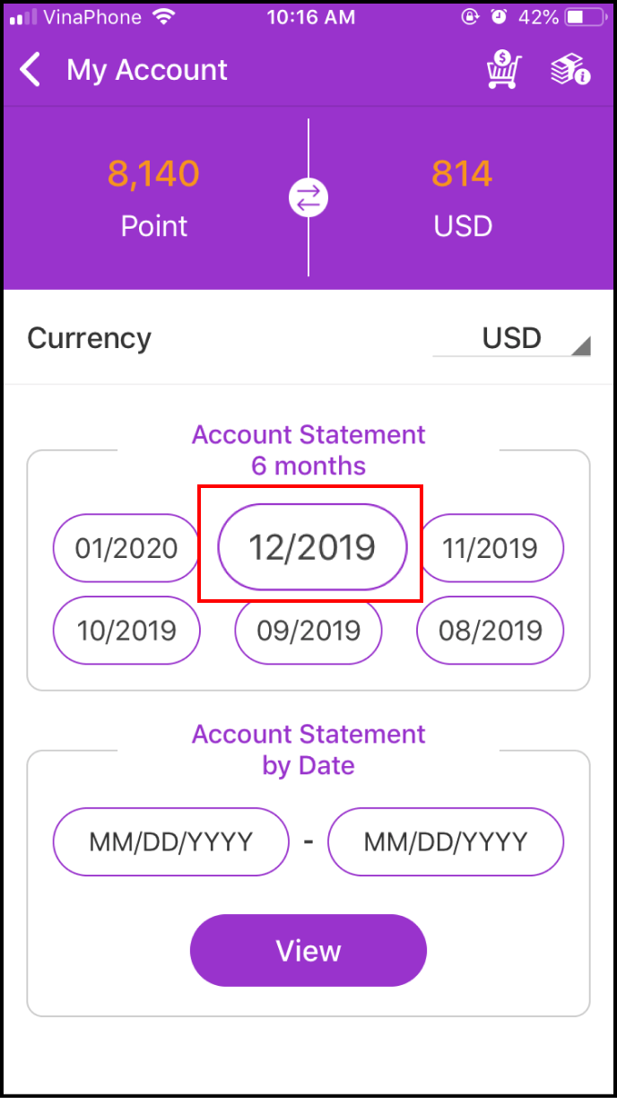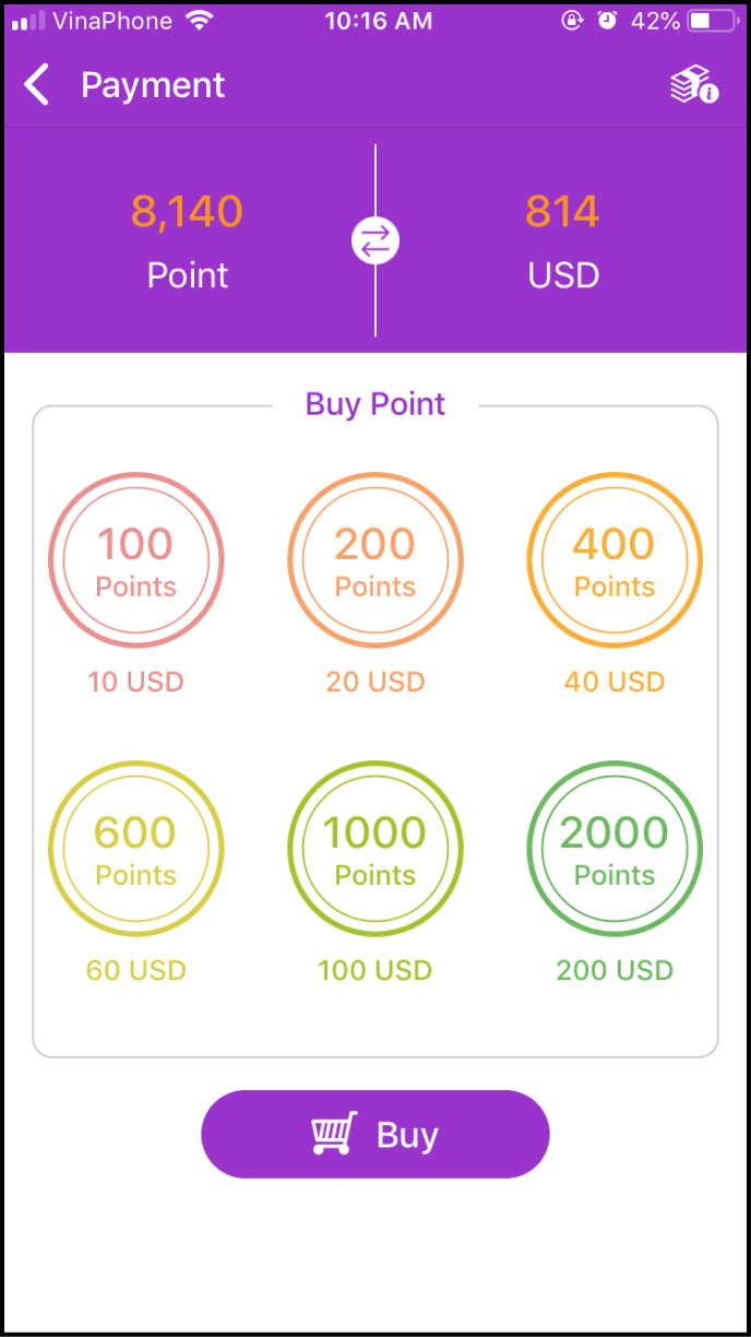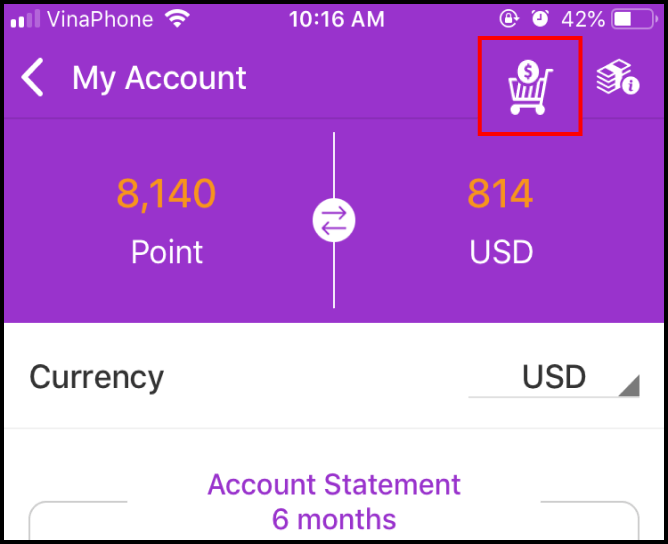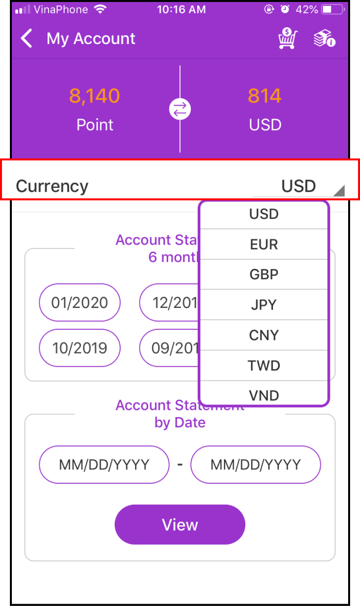 To change the currency unit in the Buy Points screen, select your preferred unit under Currency.