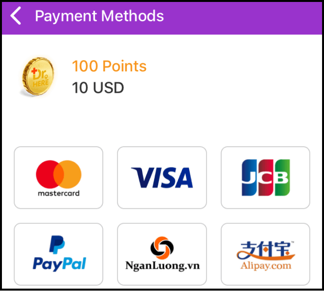 Click the Cart Symbol in the top right corner of the screen to enter the payment screen for Credit Points.