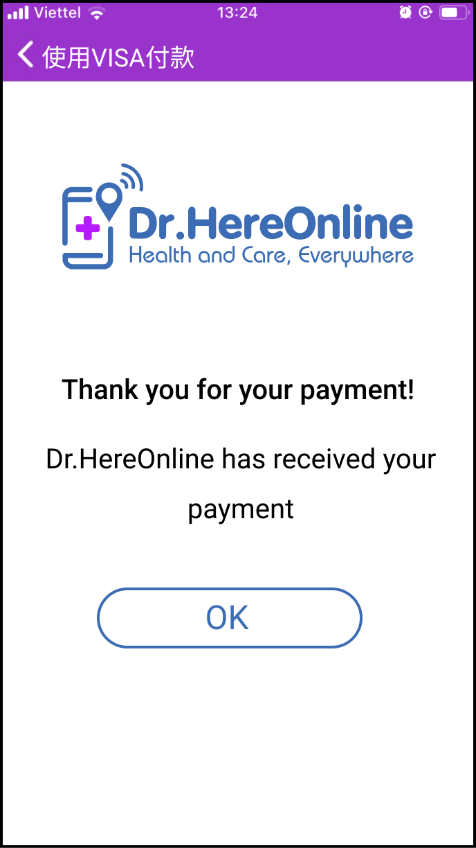 After completing the payment process, you will see the following screen. Click OK to confirm the purchase.