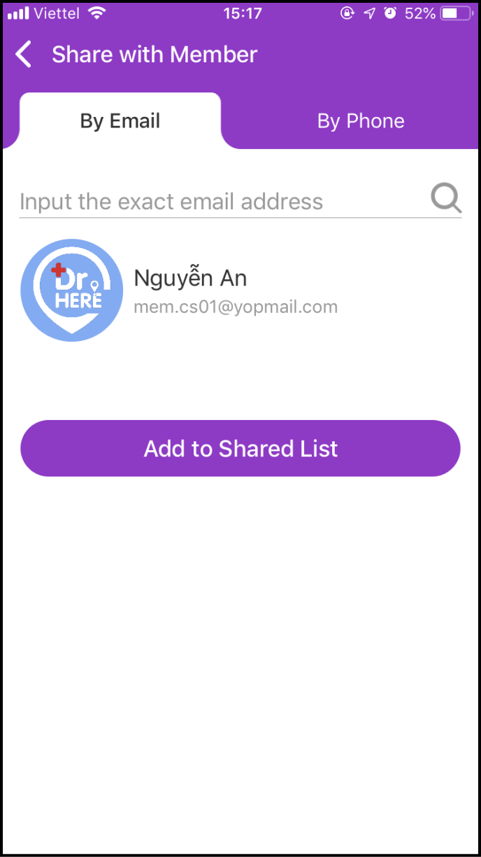 Note: The Member you want to add to your Shared List must already be a Dr.HereOnline member.